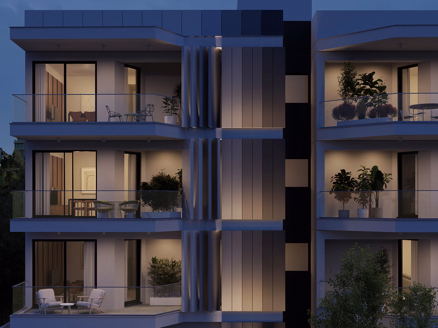 Spacious glass-fronted balconies extend each apartment outward, creating light-filled spaces that blend indoor comfort with outdoor living. Premium materials and smart construction choices ensure durability, energy efficiency, and low maintenance. With a bold yet timeless exterior, Arion Residence offers more than just a place to live; it offers a future-ready home in one of Aglantzia’s most promising neighborhoods.